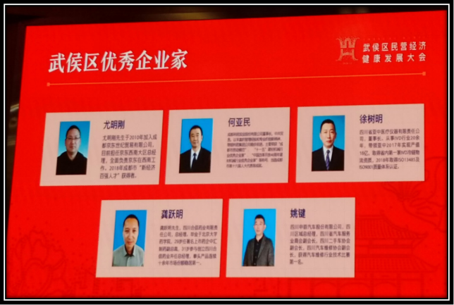 12月11日,武侯区民营经济健康发展大会召开。会议表彰了武侯区优秀民营企业50强和优秀民营企业家、优秀创业者;通报表扬了武侯区促进民营经济发展先进单位。